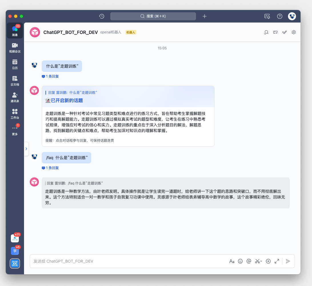 💬 知识库问答:使用 /faq 或 知识库 作为查询指令