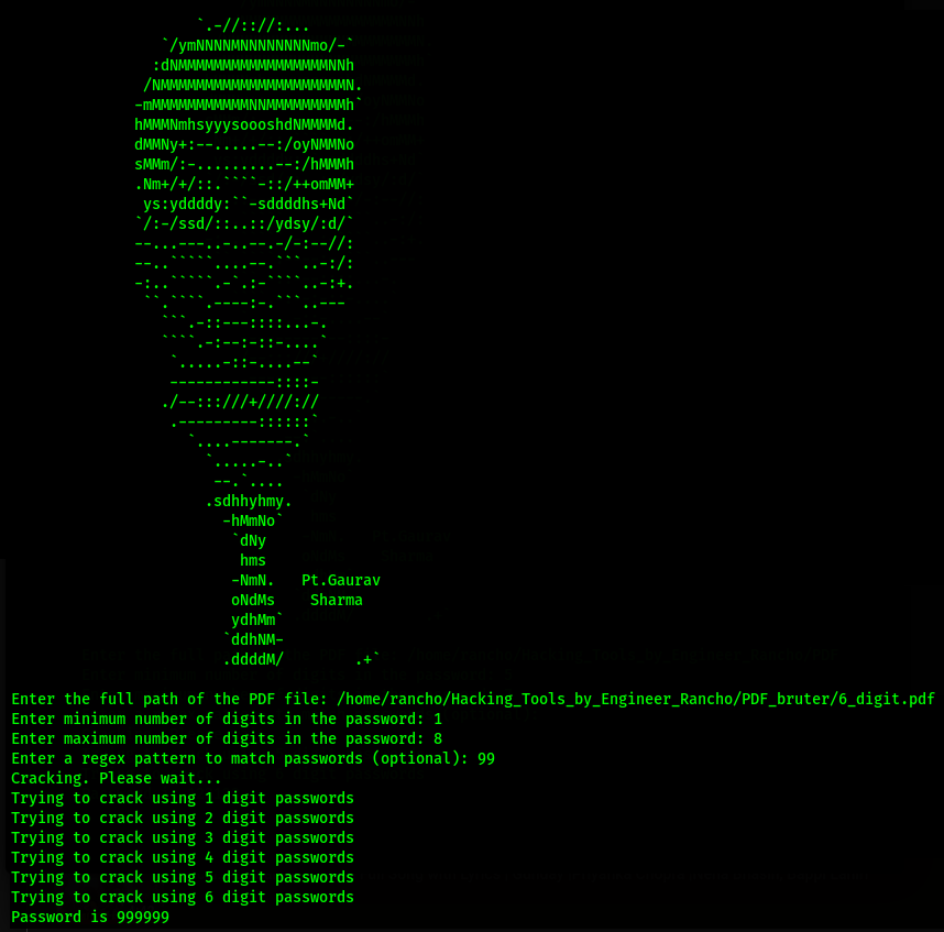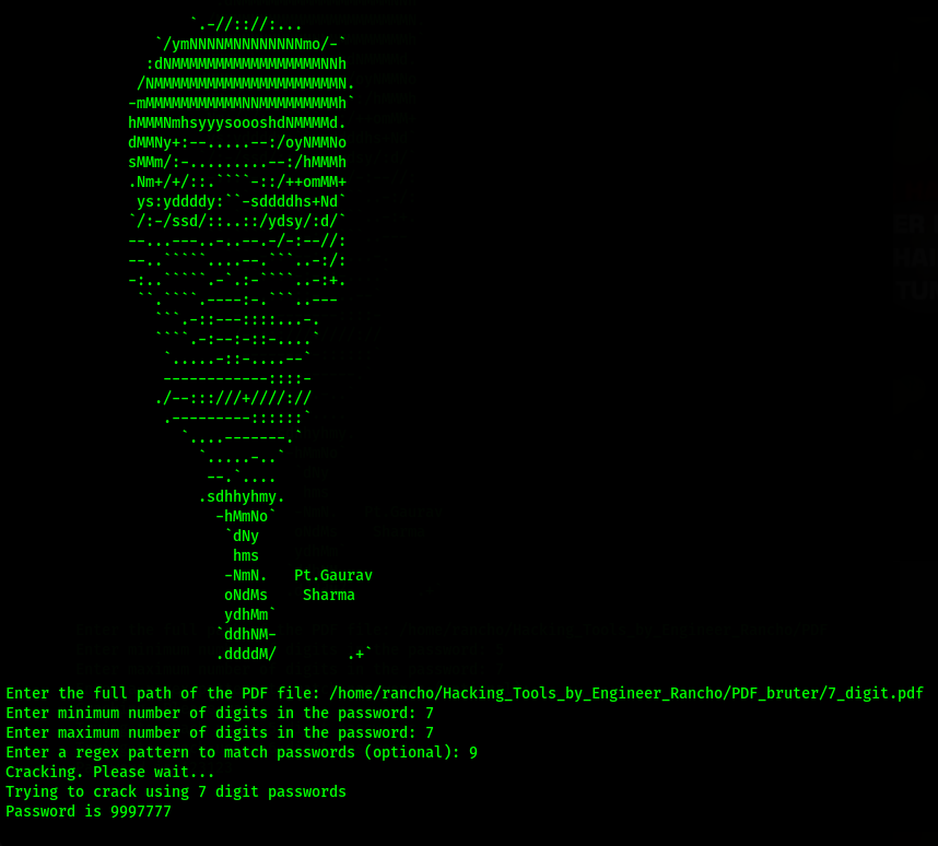 This tool helps to find the Password of the PDF irrespective of length that a password contains but take a little more instead