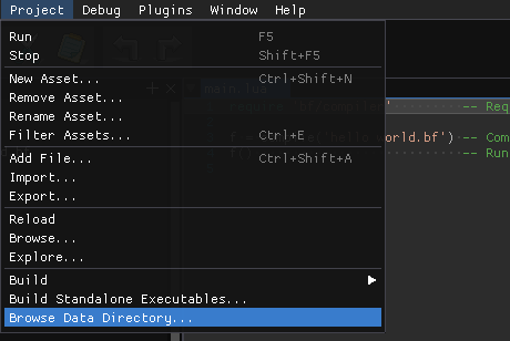 This repository demonstrates how to implement a custom compiler/transpiler plugin for Bitty Engine with a BF example.
