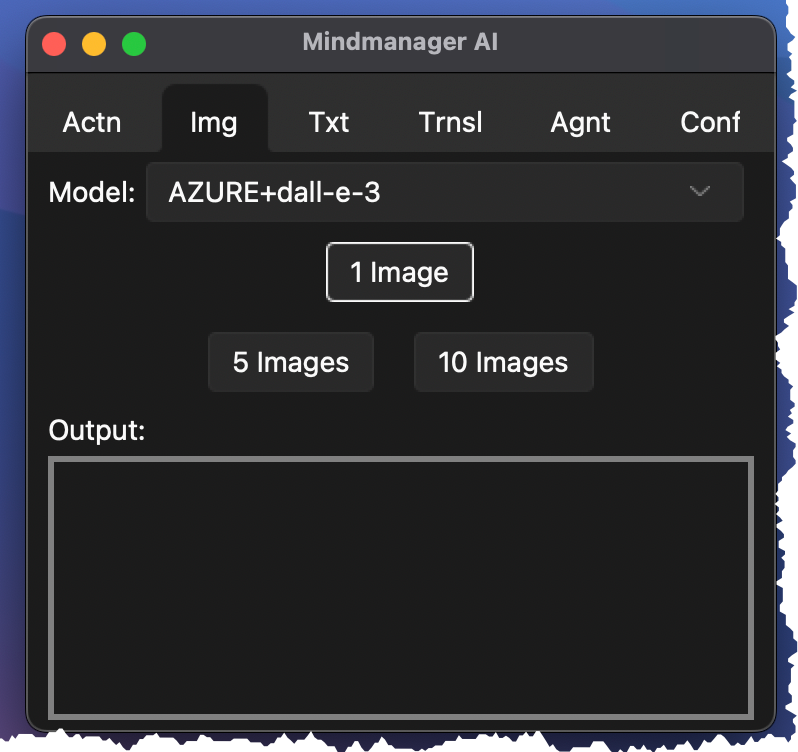 Using the image_n action (e.g., image_10) generates a batch of images in a row. A preāexecution step can optimize the prompt using an LLM call. If only one topic is selected a different prompt is used than when multiple topics are selected. Only the firstālevel topics together with the central topic should be selected for better results.