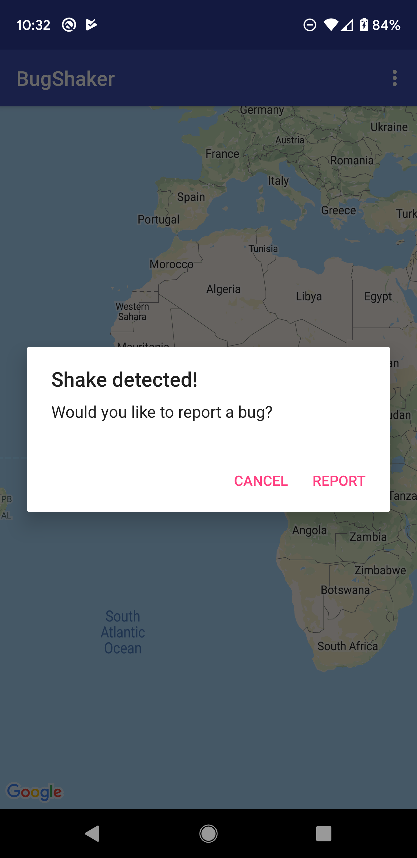 BugShakerinstance in your customApplicationclass, then callassembleandstartto begin listening for shakes:public class CustomApplication extends Application { @Override public void onCreate() { super.onCreate(); BugShaker.get(this) .setEmailAddresses("someone@example.com") // required .setEmailSubjectLine("Custom Subject Line") // optional .setAlertDialogType(AlertDialogType.NATIVE) // optional .setLoggingEnabled(BuildConfig.DEBUG) // optional .setIgnoreFlagSecure(true) // optional .assemble() // required .start(); // required } }