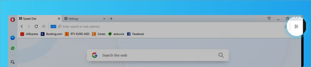 The Easy Setup panel is your quick access to manage Opera’s most prominent features. It is a great way for first-time Opera users to become familiar with the features in the browser, while also being useful for experienced users to make quick adjustments.