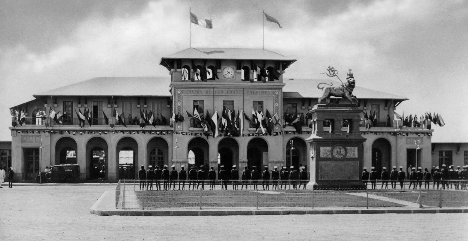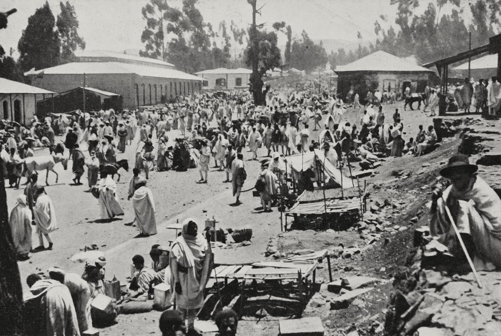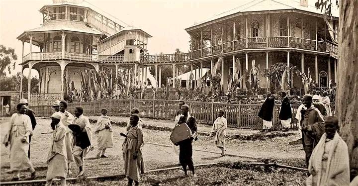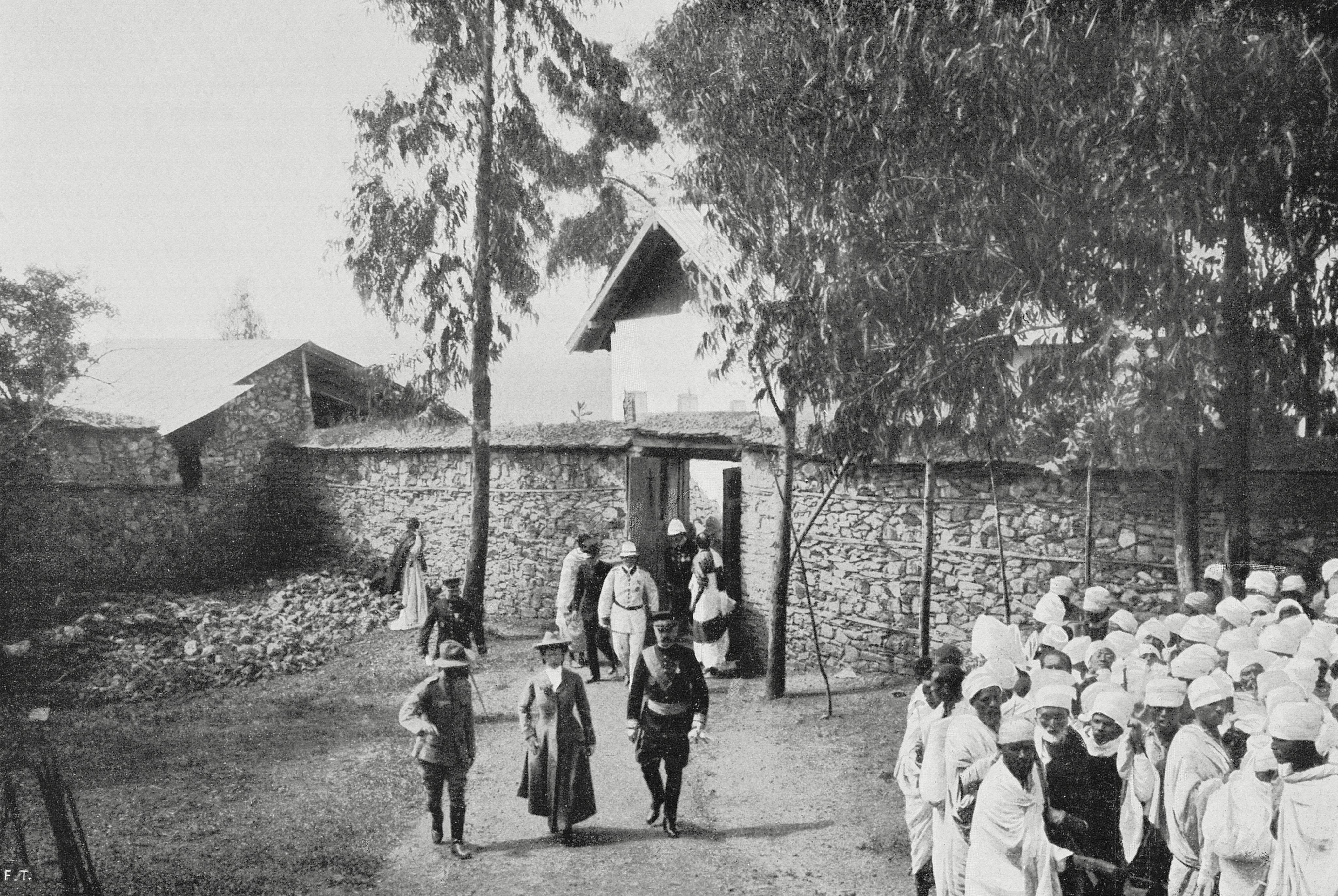 የጣሊያን ዲፕሎማቲክ ልዑካን ከዐፄ ምኒሊክ ቤተ መንግሥት ሲወጡ የሚያሳይና እአአ በ1910 በጣልያን ጋዜጣ የወጣ ምሥል