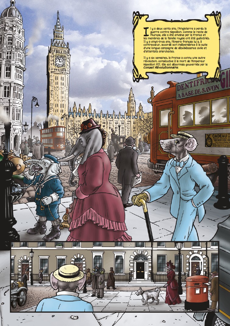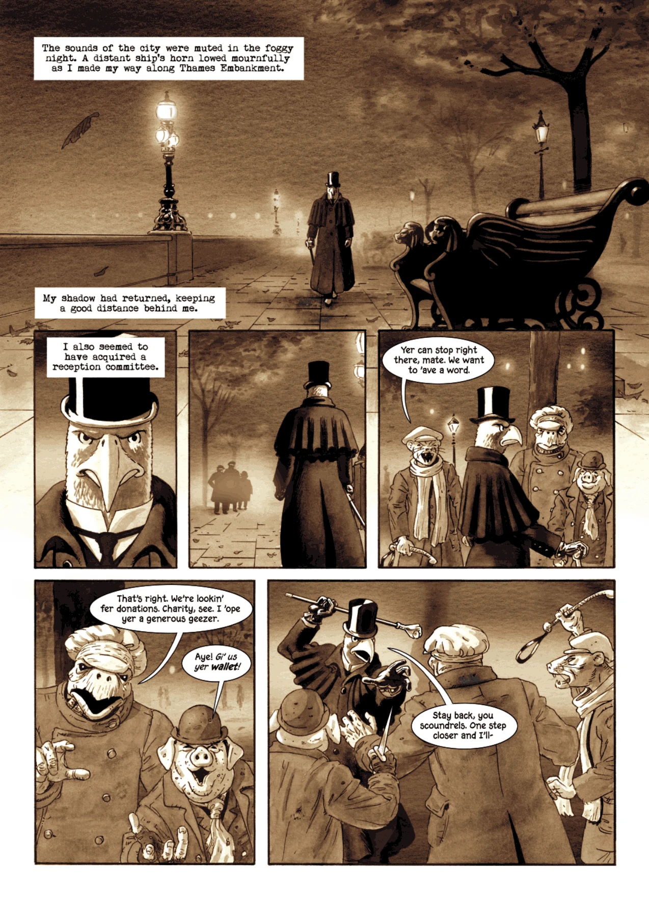 For a start, it’s not steampunk, it’s before the steam revolution. So, it’s all hansom cabs and London pea soupers. It’s very Victorian. It’s before “Nouveau”, Grandville is very “Nouveau”, but there’s no Art Nouveau in this one.